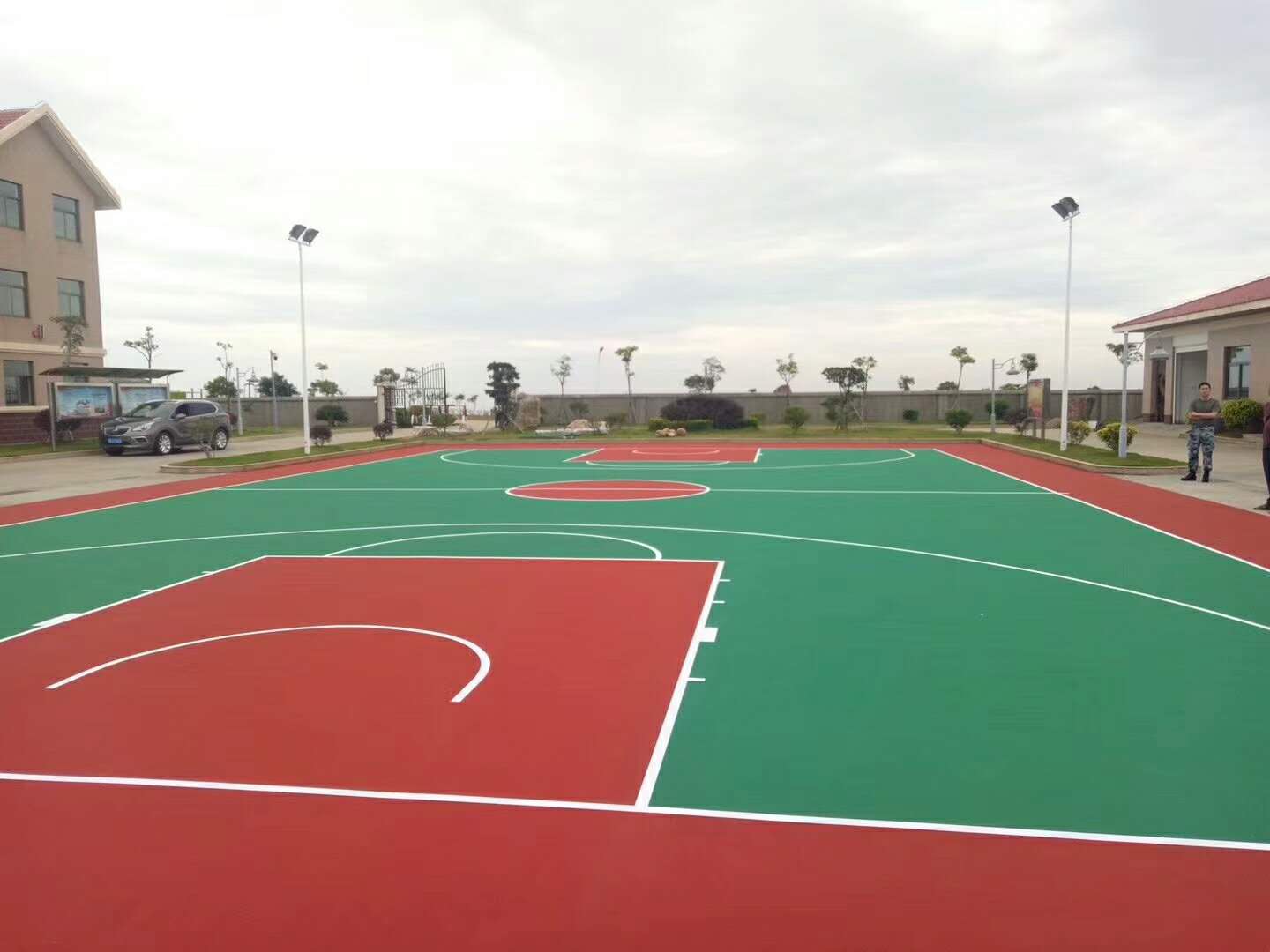 河南秀地公司硅PU球場施工材料所用是近年來在體育運動場地得到廣泛應用的新型籃球場材料,主要成分為、聚氨酯、硅PU、丙烯酸材料特點是安全環保、延展性好,其中優秀的耐候性適應在不同氣候環境中廣泛應用,獨特的減震和彈力性能對預防運動傷害具有深刻意義。